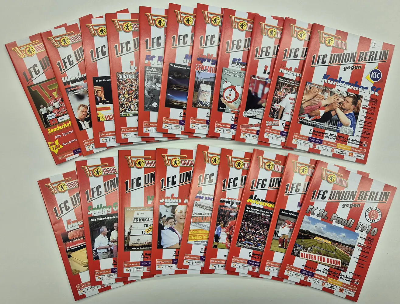 Für Sammler und echte Union-Fans: Diese Kollektion enthält die komplette Reihe der offiziellen Stadionhefte (Programmhefte) des 1. FC Union Berlin aus der Saison 2003/04