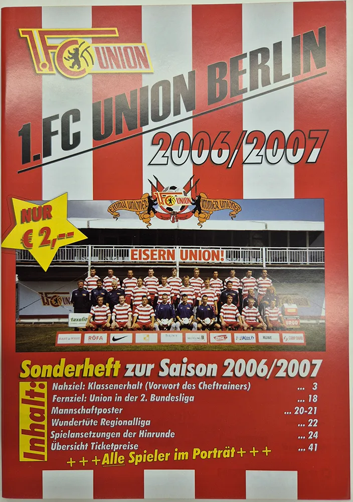 Für Sammler und echte Union-Fans: Diese Kollektion enthält die komplette Reihe der offiziellen Stadionhefte (Programmhefte) des 1. FC Union Berlin aus der Saison 2006/07