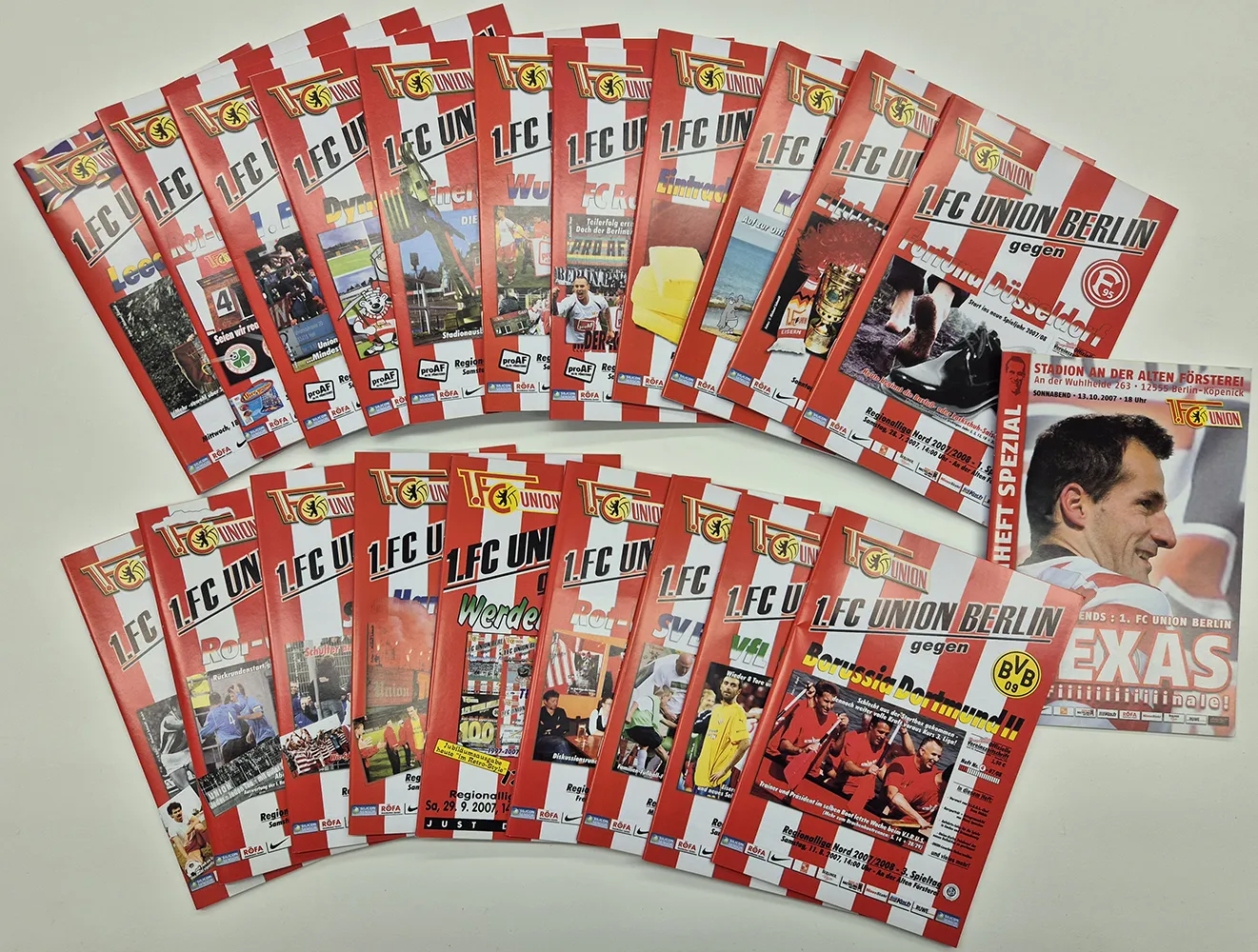 Für Sammler und echte Union-Fans: Diese Kollektion enthält die komplette Reihe der offiziellen Stadionhefte (Programmhefte) des 1. FC Union Berlin aus der Saison 2007/08