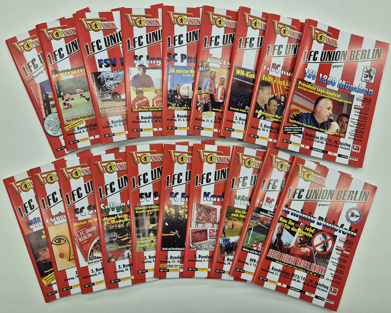 Für Sammler und echte Union-Fans: Diese Kollektion enthält die komplette Reihe der offiziellen Stadionhefte (Programmhefte) des 1. FC Union Berlin aus der Saison 2013/14
