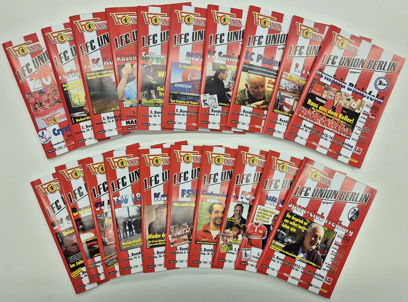 Für Sammler und echte Union-Fans: Diese Kollektion enthält die komplette Reihe der offiziellen Stadionhefte (Programmhefte) des 1. FC Union Berlin aus der Saison 2015/16